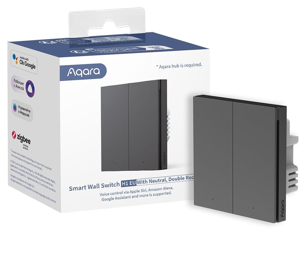 Smart Vægkontakten Aqara H1 Grå, Dobbelt, Uden Nulleder