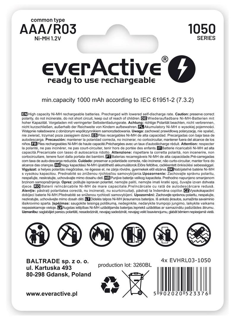 Genopladelige Batterier AAA Ni-MH 1050 MAh EverActive Professional Line (4-pak)